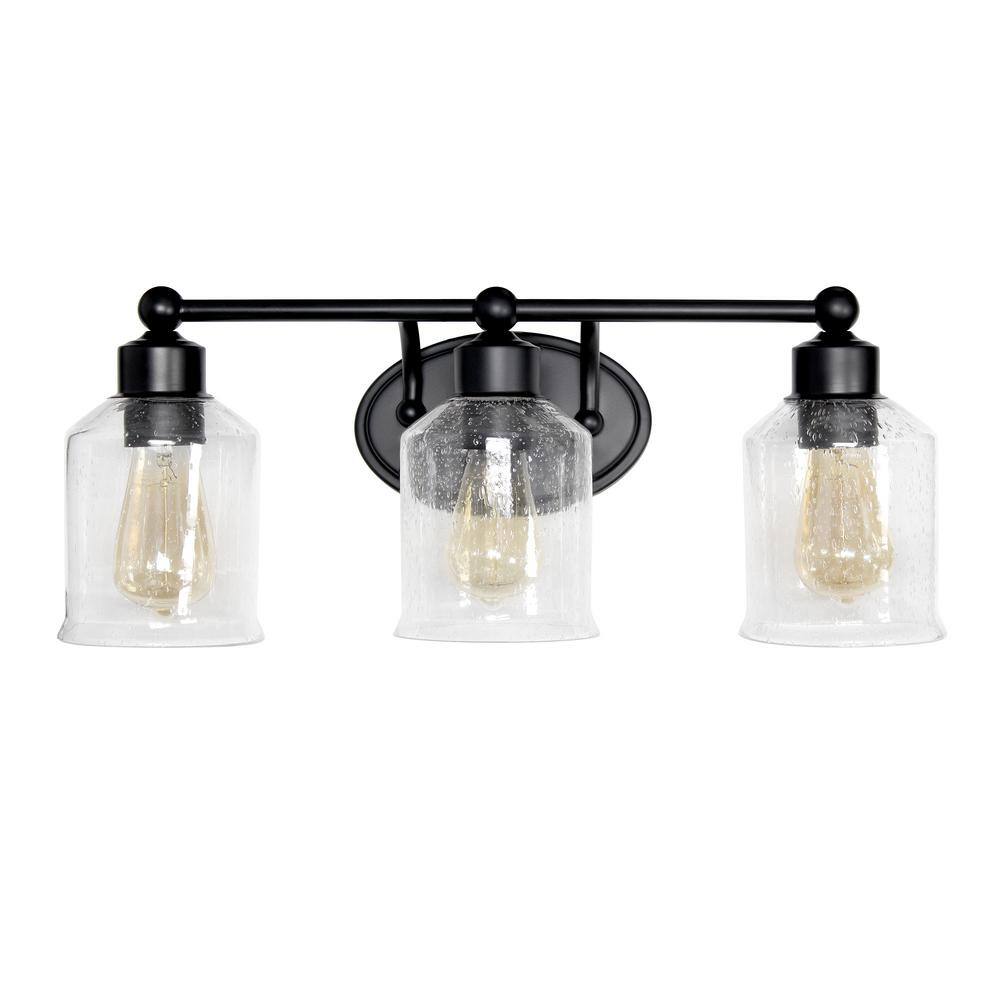 Lalia Home 22 in. Black Modern 3 Light Metal and Clear Seeded Glass Shade Vanity Wall Fixture with Matching Metal Accents