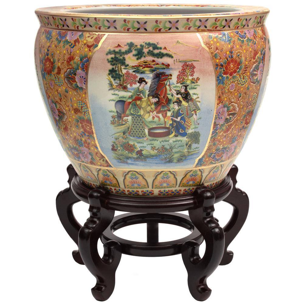 Oriental Furniture 14" Horse in Meadow Porcelain Fishbowl, oriental item, living area, decorative piece
