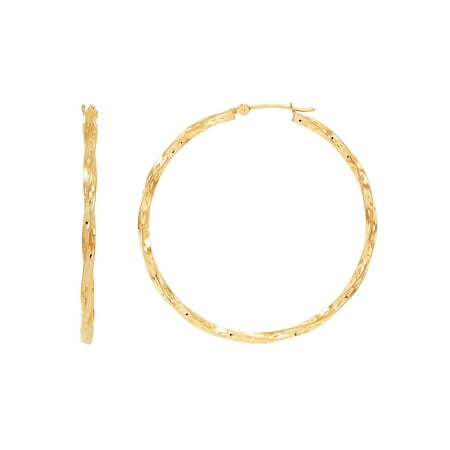 Brilliance Fine Jewelry 10K Yellow Gold Hollow Round Twist Hoop Earrings