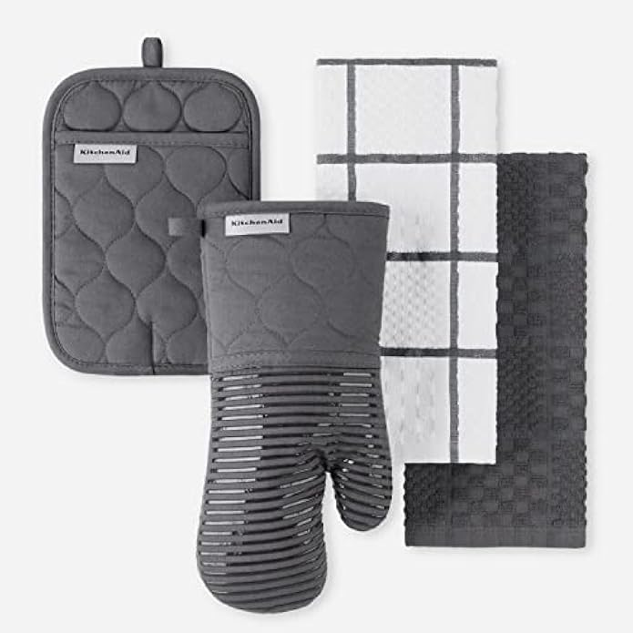 KitchenAid Onion Quilt KT OM PH Kitchen Towel, Oven Mitt & Potholder Set, Charcoal Grey