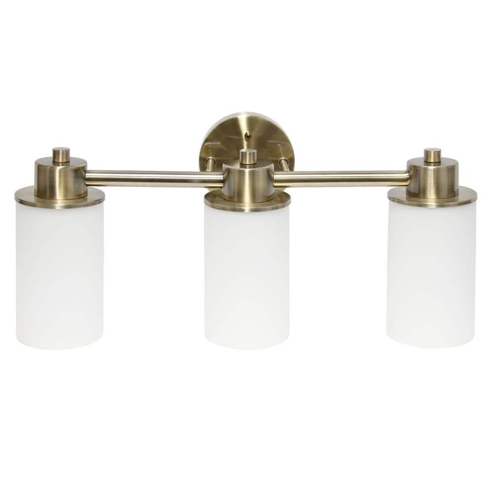 Lalia Home 6.50 in. 3-Light Antique Brass and Opaque White Metal and Glass Shade Vanity Uplight Downlight Wall Fixture