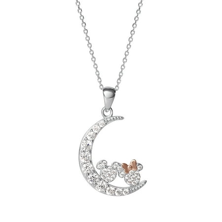 Disney Women’s CZ Sterling Silver Minnie and Mickey Moon Pendant, 18”
