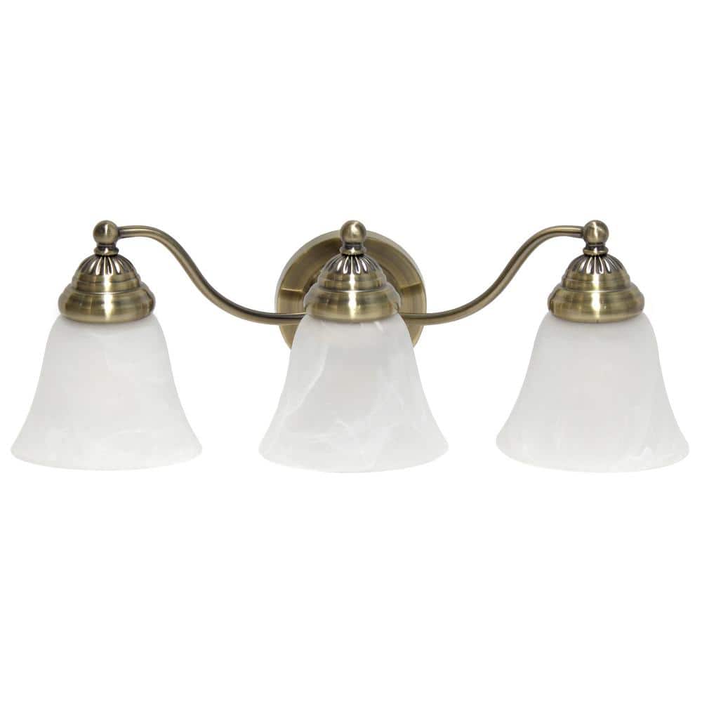 19.25" Classic 3 Light Winding Metal And Frosted Marble White Bell Shape Glass Shades Wall Mounted Vanity Fixture