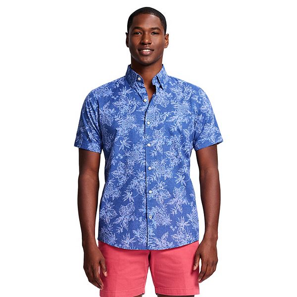 Izod Men's Saltwater Dockside Chambray Short Sleeve Button Down Shirt, Twilight Blue, XX-Large