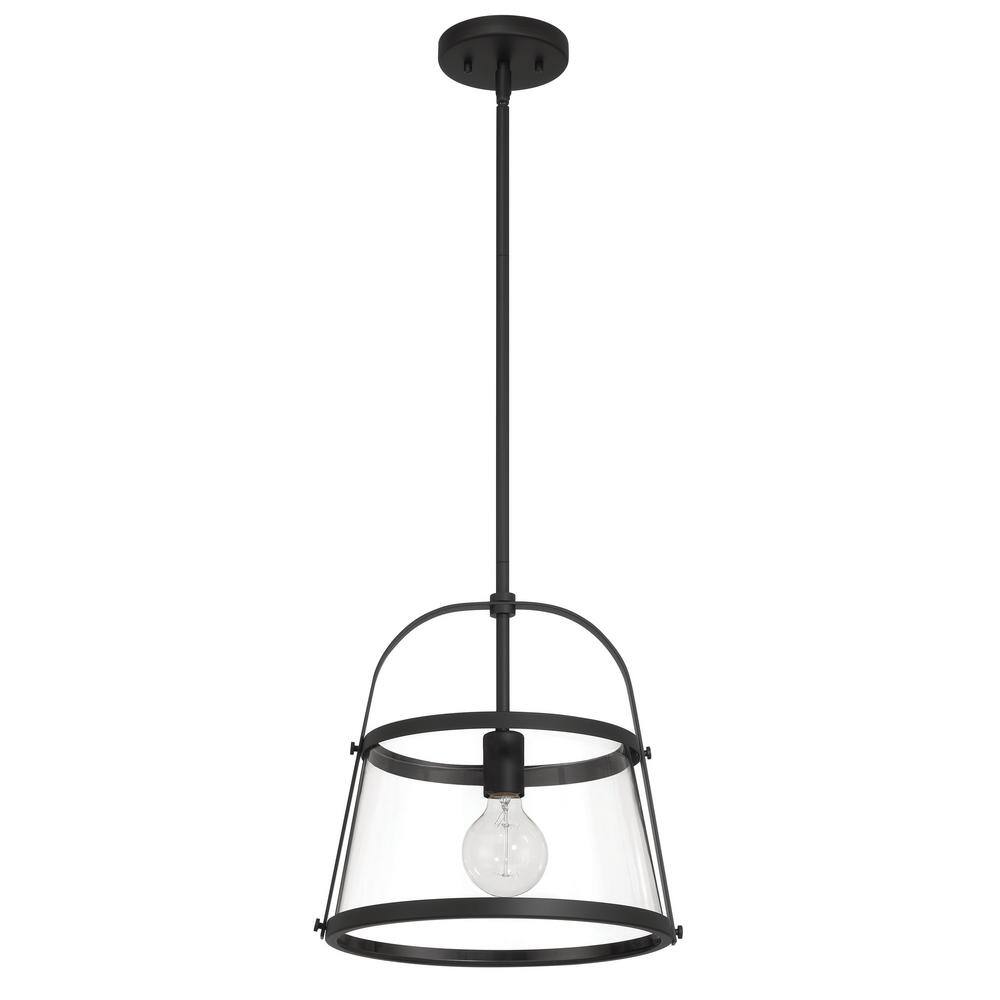 ROBERT STEVENSON LIGHTING Fallon 1-Light Matte Black Vintage Pendant Light with Metal and Clear Glass Shade, No Bulbs Included