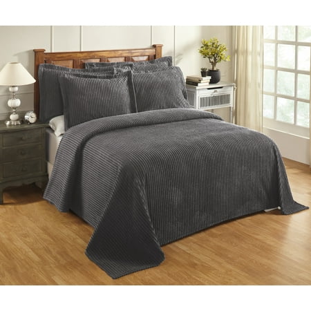 Better Trends 100% Cotton Full/Double Bedspread – Soft & Cozy Classic Stripe Coverlet, Machine Washable (96" x 110", Gray) Jullian Collection