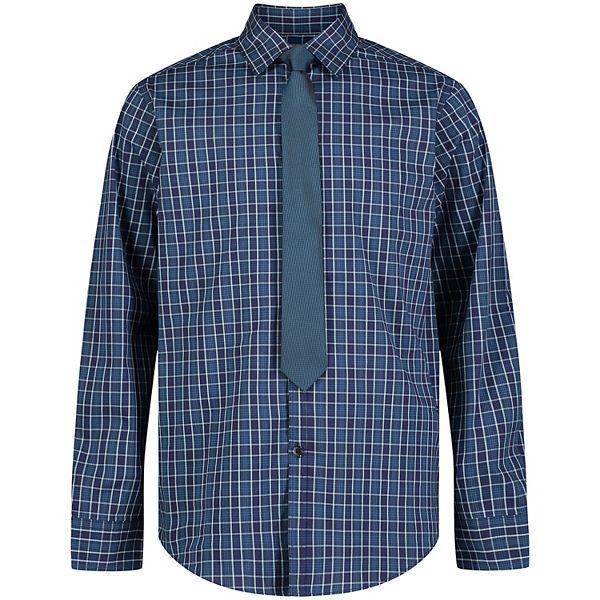 Van Heusen Boys' Long Sleeve Collared Button-Down Dress Shirt and Tie Set, Flag Blue Gingham, 8 Husky