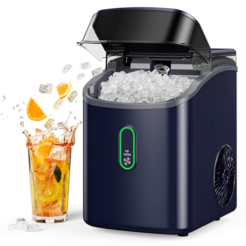 Nugget Ice Maker Countertop, Pebble Ice Maker with Crushed Ice, One-Click Operation Ice Machine with Self-Cleaning, 33lbs/24H for Home, Kitchen, Office, Blue