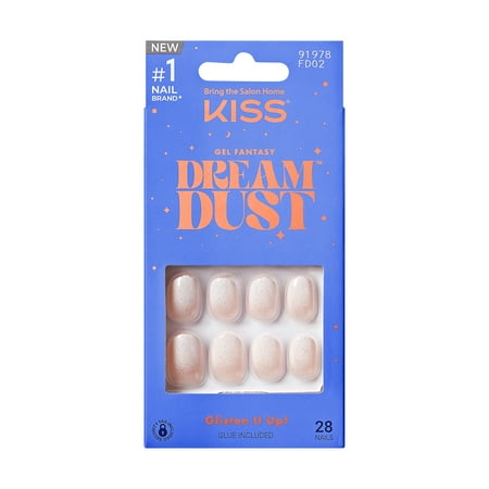 KISS Gel Fantasy Dreamdust Dreamdust, Press On Nails, Silver Spoon, White, Short Oval, 28 Count