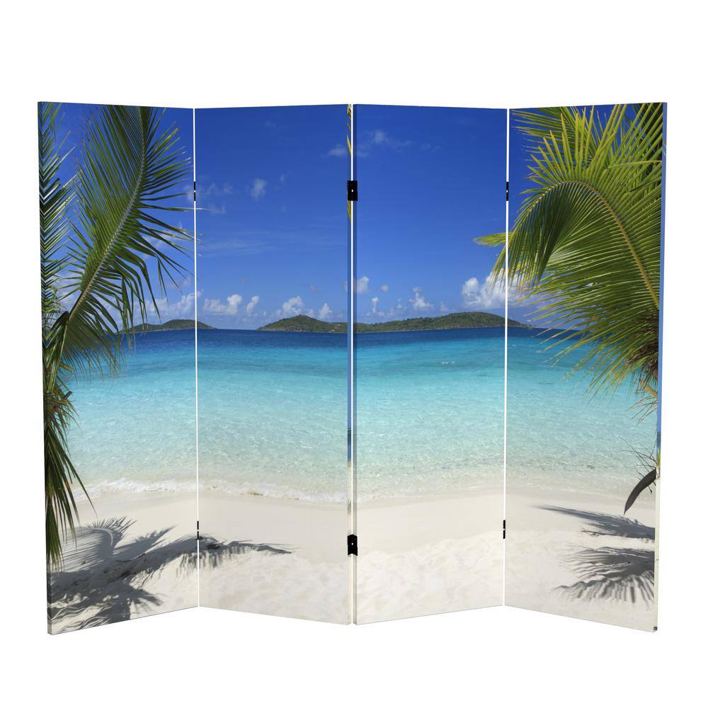 RED LANTERN 4 ft. Short Beach Canvas 4-Panel Folding Screen
