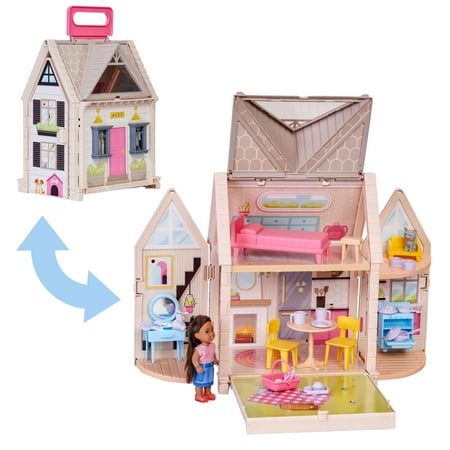 KidKraft Tote-ables™ Portable Cottage Dollhouse with Doll Included, Storage, 30 Accessories
