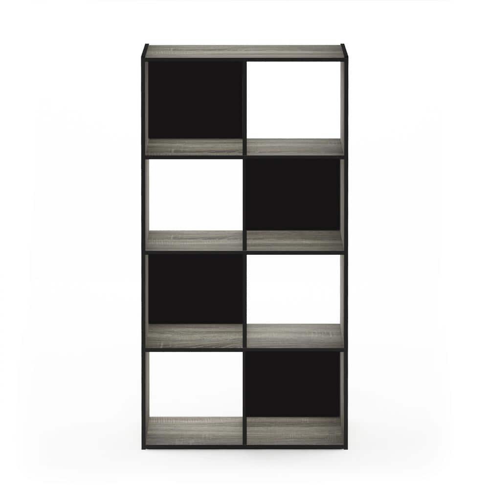 Furinno Pelli 47.72 in. French Oak Gray Wood 8-shelf Cube Bookcase with Open Back