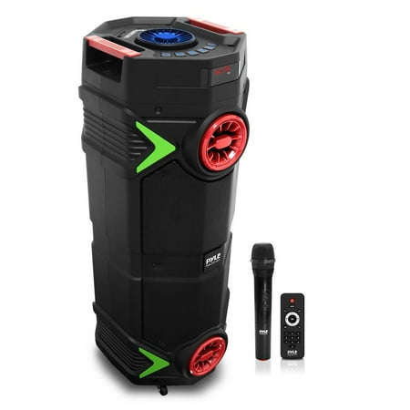 Pyle Wireless Portable PA Speaker System - 800W Powered Bluetooth Indoor & Outdoor DJ Stereo Loudspeaker with MP3 AUX 3.5mm Input, Flashing Party Light & FM Radio-PPHP1244B,Black