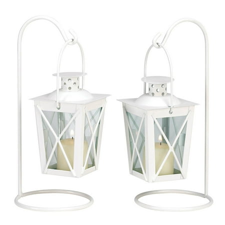9" Iron Railroad Outdoor Lantern White - Zingz & Thingz: Baked-On Paint Finish, Tabletop Candle Holder, Fits Tealight
