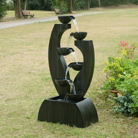 Hi-Line Gift Ltd. Outdoor Metal Cups Fountain with Rusty Gray Finish