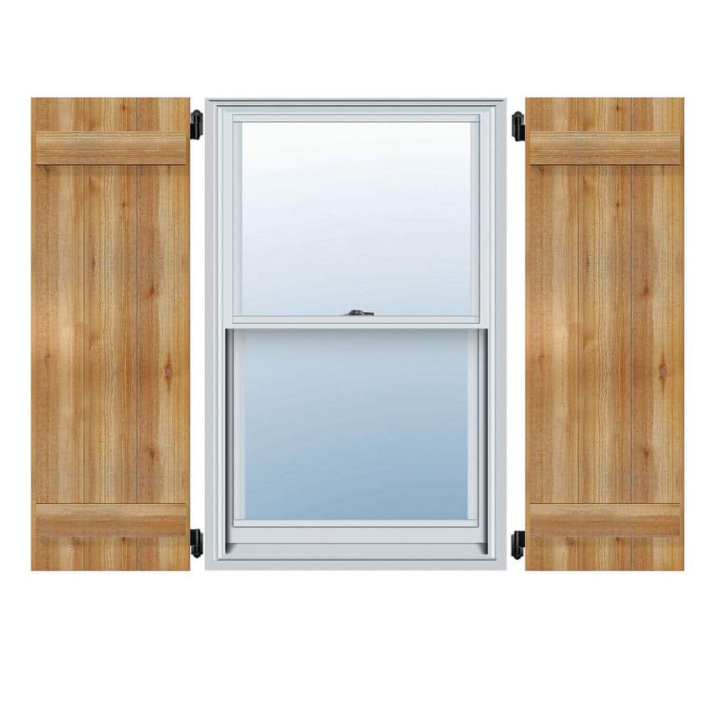 Ekena Millwork 16-1/8" X 54"Timbercraft Rustic Wood Three 5-3/8"Joined Board and Batten Shutters Rough Sawn Cedar(pair)