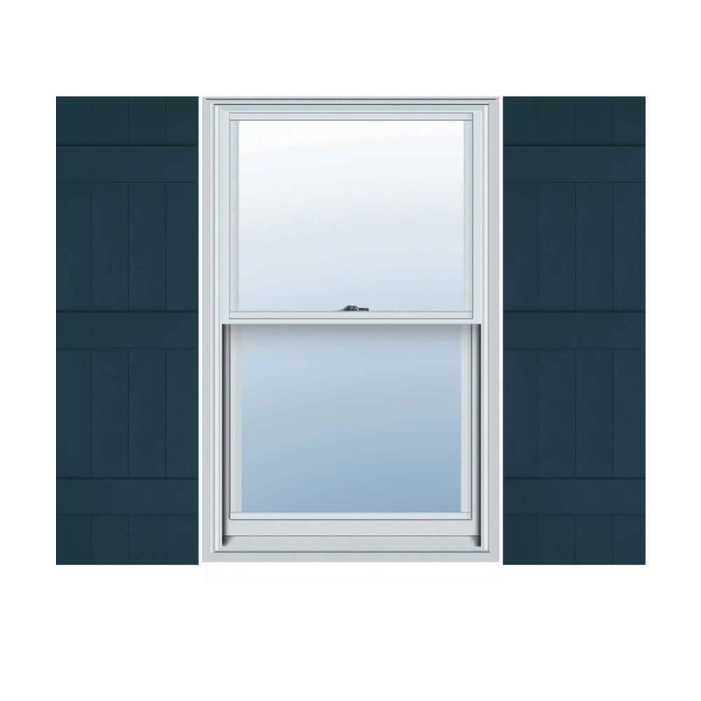 Ekena Millwork 14 in. x 55 in. Lifetime Vinyl Standard Four Board Joined Board and Batten Shutters Pair Midnight Blue