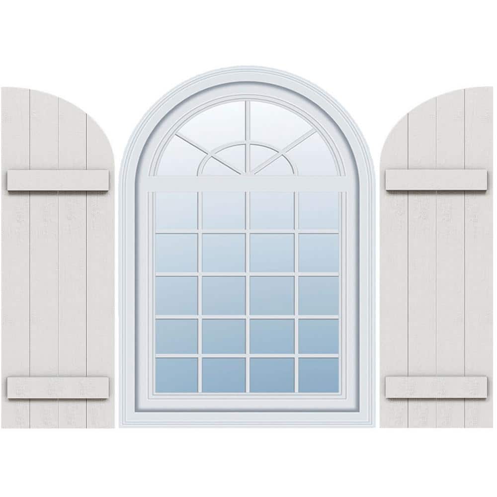 Ekena Millwork 21-1/2 in. x 53 in. Polyurethane Rustic 4-Board Joined Board and Batten Shutters Faux Wood w/Quarter Round Arch Top Pair