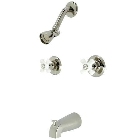 Kingston Brass KB246PXPN Victorian Tub and Shower Faucet with Porcelain Handles, Polished Nickel