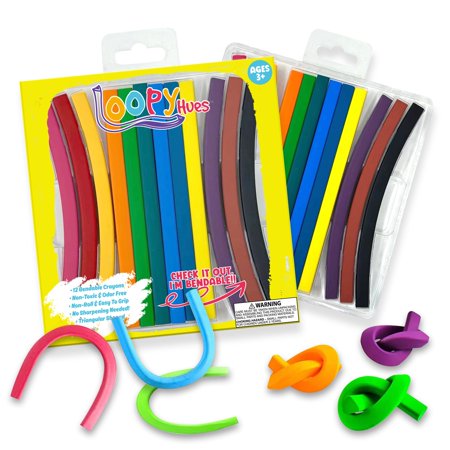 Loopy Hues Triangular Shaped Bendable Crayons, School Supplies (12 Count)