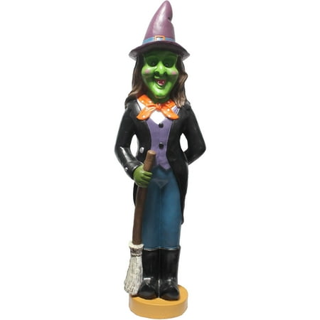 Haunted Hill Farm 4-Ft. Scary Witch Holding a Broom, LED Lighted Eyes, Resin Halloween Prop, Indoor or Covered Outdoor Decoration, HHRS048-1WTC-MLT