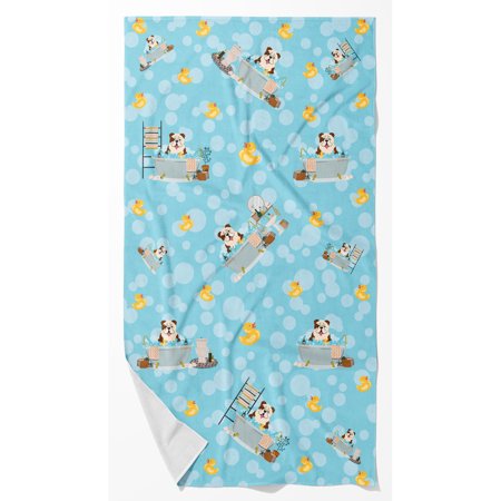 Brindle White English Bulldog in Bathtub Bath Towel Large 24 in x 42 in