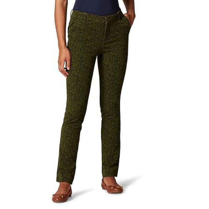 Amazon Essentials Women's Bi-Stretch Full Length Straight Leg Pant, Black Olive Animal Print, 8