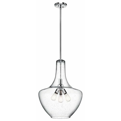 Kichler Everly 27.5" 3 Light Bell Pendant Clear Seeded Glass Chrome