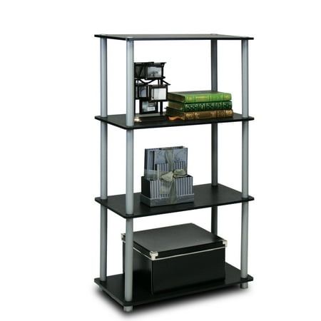 Furinno TURN-N-TUBE Storage Shelves, 4-Tier Toolless Book Shelf, Corner Shelf, Toolless Open Shelves, for Organization and Storage, Living Room, Garage, Home Office, Black