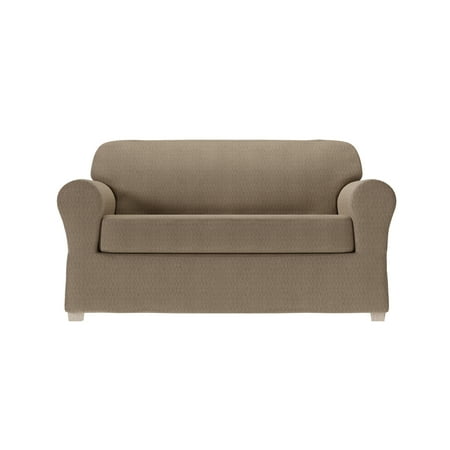 2pc Steps Stretch Loveseat Slipcover Green: Zenna Home, Elastic-Fit Bottom, Machine Washable, Indoor Use