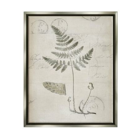 Stupell Industries Antique Fern Woodland Plant Study Botanical & Floral Drawing Gray Floater Framed Art Print Wall Art