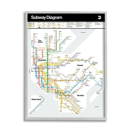 Stupell Industries New York City Urban Subway Diagram Chart Graphic Art Gray Framed Art Print Wall Art, Design by JG Studios