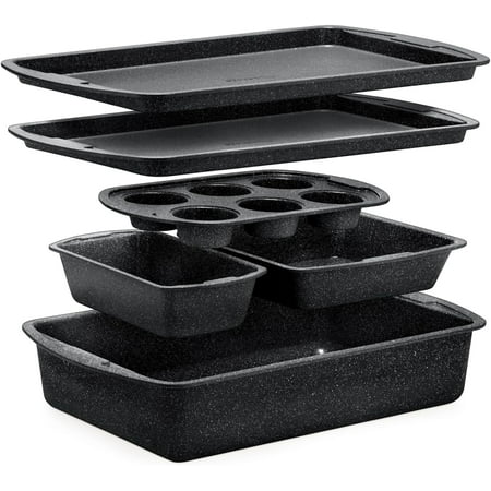 Bakken Swiss - Bakeware Set – 6 Piece – Stackable, Deluxe, Non-Stick Baking Pans for Professional and Home Cooking – Carbon Steel, Gray Stone Coating