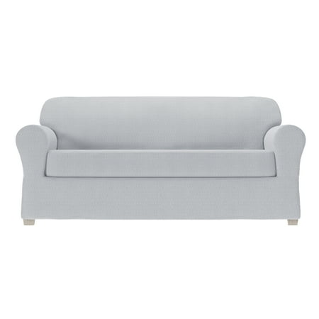 2pc Steps Stretch Sofa Slipcover Silver - Zenna Home: Elastic-Fit, Polyester & Spandex, Machine Washable