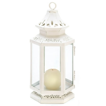 Zingz & Thingz White Metal Victorian Lantern with Floral Cutouts and Glass Panels 10.5" Tall