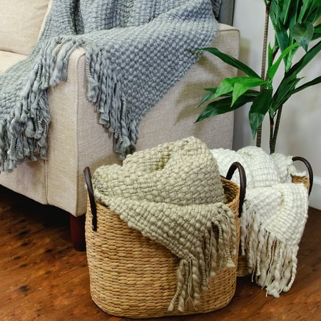 Vue Throw Blanket - Effie Solid Knit with Tassles, Throw Blankets for Couch or Bed, 50" x 60", Antique White