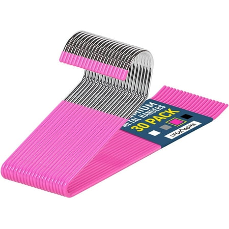LifeMaster 30-Pc Metal Non-Slip Pants Hangers - Pink Heavy Duty Set for Pants, Jeans, Blankets - Space-Saving, Open-Ended Design - Keep Closet Organized - Ideal for Large Items - Durable PVC Cover