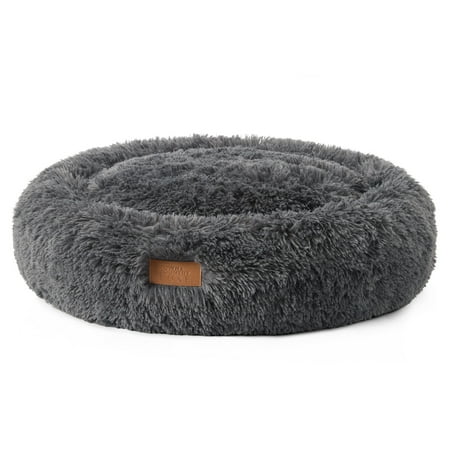 TOWN & COUNTRY LUXE CuddleTown Fuzzy Solid Donut Pet Bed, Soft, Cozy & Calming, Water Repellent, Non-Slip Bottom, 100% Machine Washable, Dark Grey, Medium 28"x28"x7" Round