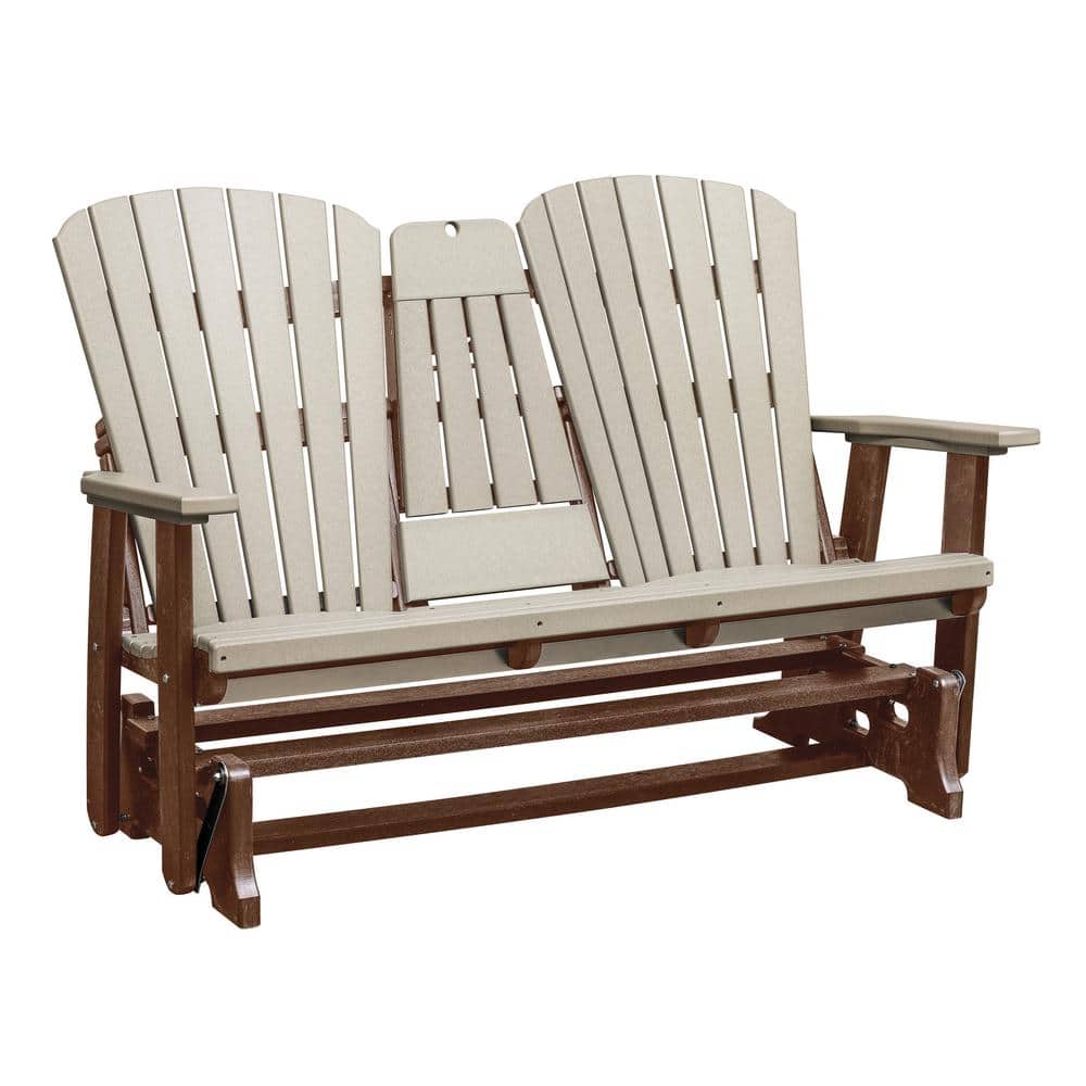 American Furniture Classics Adirondack 60 in. 2-Person Tudor Brown Frame High Density Plastic Outdoor Glider with Weatherwood Seats and Backs