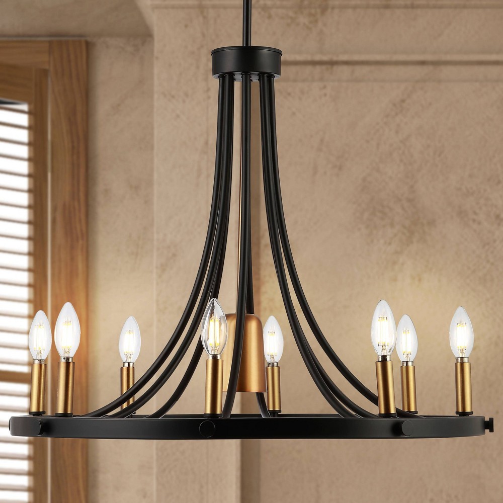 27" 9-Light LED Adjustable Iron Urbanna Transitional Modern Chandelier Black/Gold - JONATHAN Y
