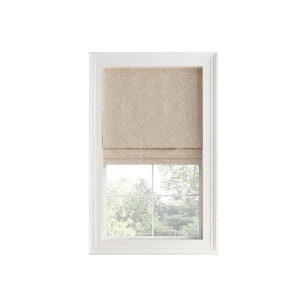 Eclipse Branches Champagne Cordless 100% Blackout Polyester Roman Shade - 27 in. W x 64 in. L