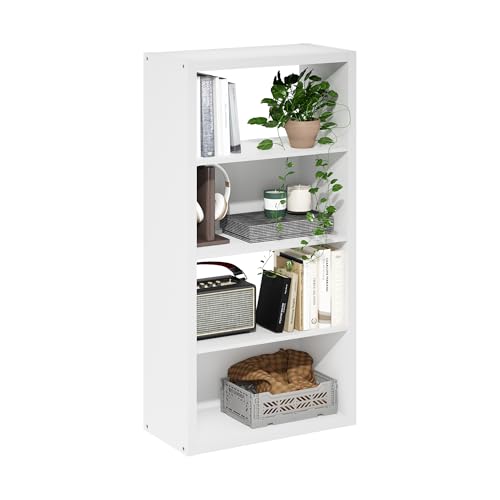 Furinno Viola Book Shelf, 4-Tier Bookshelf, Bookcase with Open Shelf, 11.3 x 23.2 x 45.4, for Living Room, Bedroom, Home Office, White