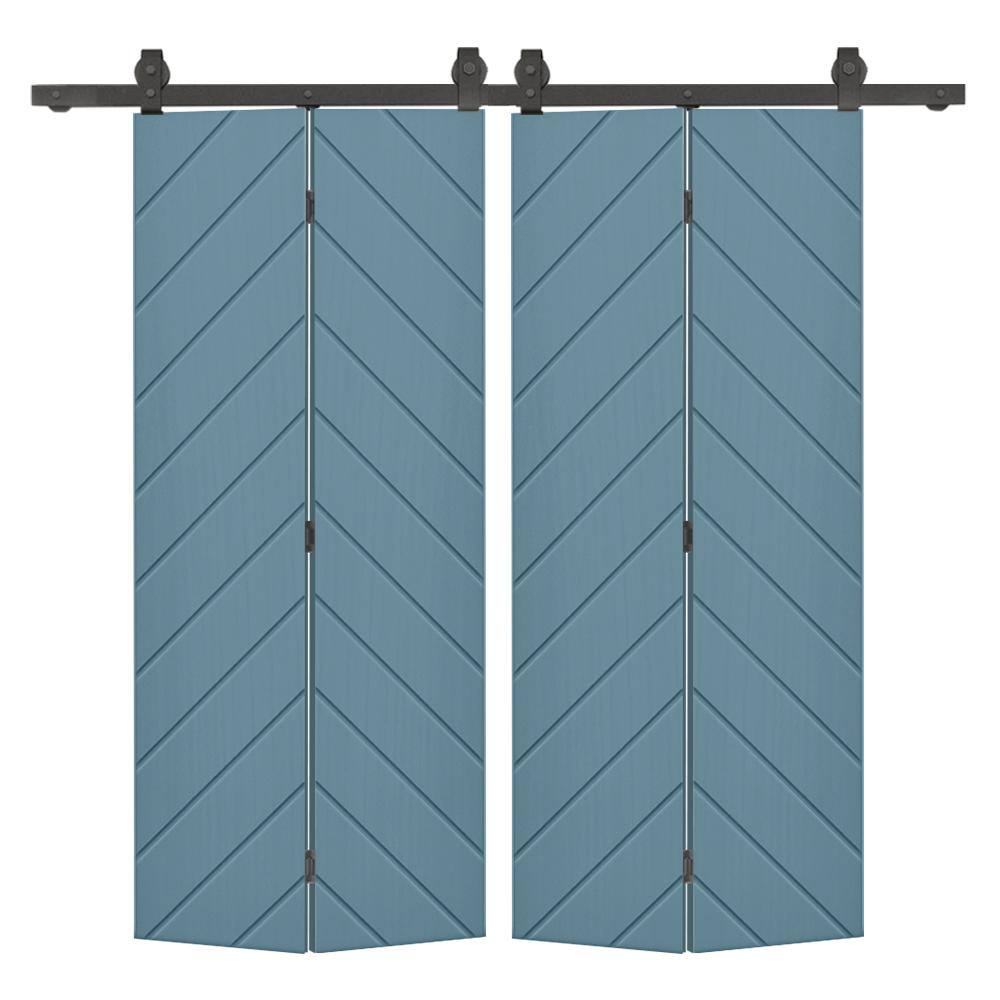 CALHOME Herringbone 72 in. x 80 in. Dignity Blue Painted MDF Modern Bi-Fold Double Barn Door with Sliding Hardware Kit
