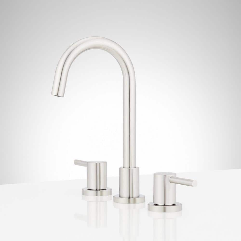 SIGNATURE HARDWARE Lexia 8 in. Widespread Double Handle Bathroom Faucet in Brushed Nickel
