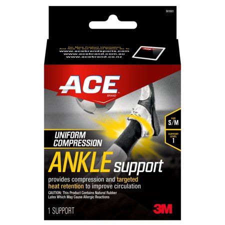 ACE Brand Compression Ankle Support, Small/Medium, Gray