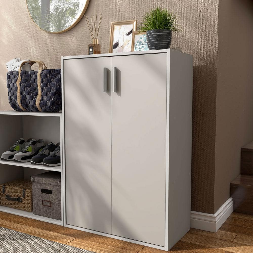 Furniture of America Quincy 35.2 in. Tall Stackable Greige Engineered Wood 3-Shelf Modern Modular Cabinet Bookcase With 2 Doors
