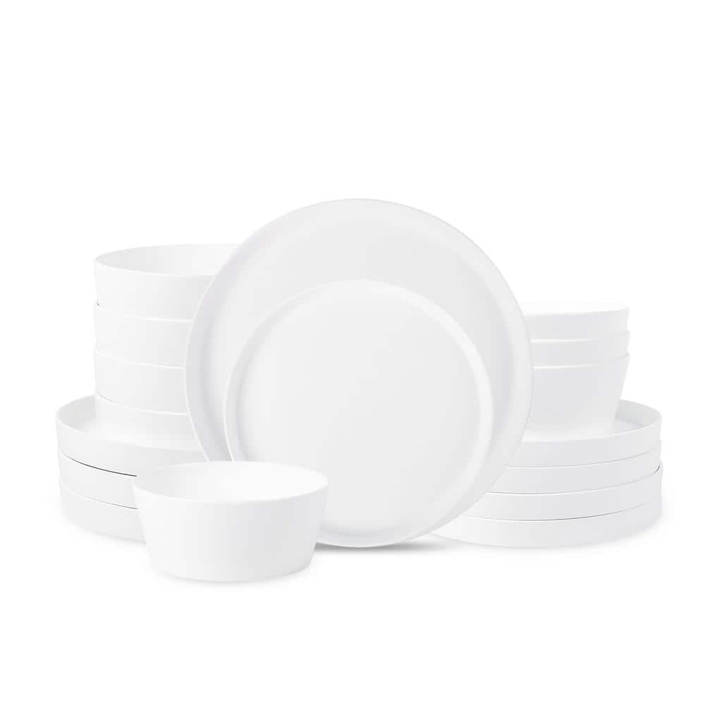 Amazon Basics Dinnerware Set, Microwave and Dishwasher Safe, Service for 6, 18-Piece Complete Kitchen, Plates, Dishes, Bowls, White Porcelain Coupe