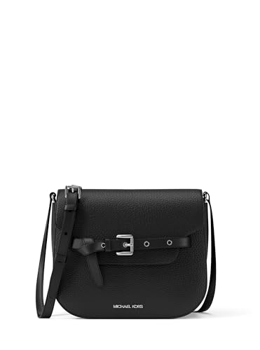 Michael Kors Women's Emilia Small Saddle Crossbody Bag, Black/Pebbled Leather, One Size