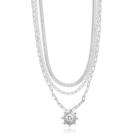 Time and Tru Silvertone Necklace, 3 Piece, Initial N