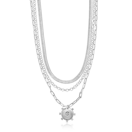 Time and Tru Silvertone Necklace, 3 Piece, Initial E